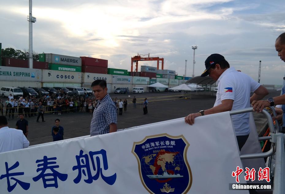 這支艦艇編隊(duì)4月23日從上海黃浦江畔啟航,將赴亞洲、歐洲、非洲和大洋洲20余個國家進(jìn)行友好訪問,菲律賓是首站。圖為長春艦緩緩靠岸。 中新社記者 張明 攝