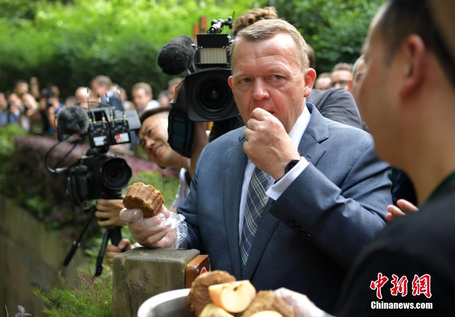 5月2日,丹麥?zhǔn)紫嗬鼓律勾笮茇埑蕴O果。當(dāng)日,應(yīng)中國國務(wù)院總理李克強(qiáng)邀請,丹麥?zhǔn)紫嗬鼓律D行抵達(dá)中國成都,開始對中國進(jìn)行正式訪問,拉斯穆森此訪系其2015年當(dāng)選首相以來首次訪華,其訪問首站就來到四川成都。中新社記者 劉忠俊 攝