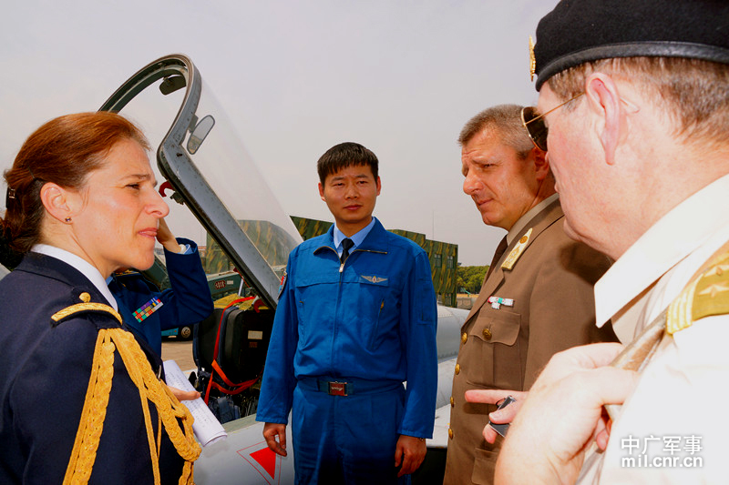 “飛豹雄獅”飛行大隊長劉杰向駐華武官介紹“飛豹”戰(zhàn)機