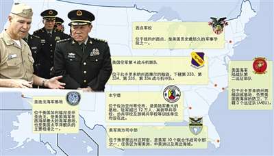 中國國防部部長梁光烈上將先后參觀美軍六大一線基地。