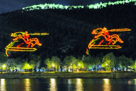 激光照射龍門(mén)山,迷離變幻現(xiàn)代感。
