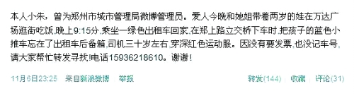 前城管發(fā)條微博尋嬰兒車