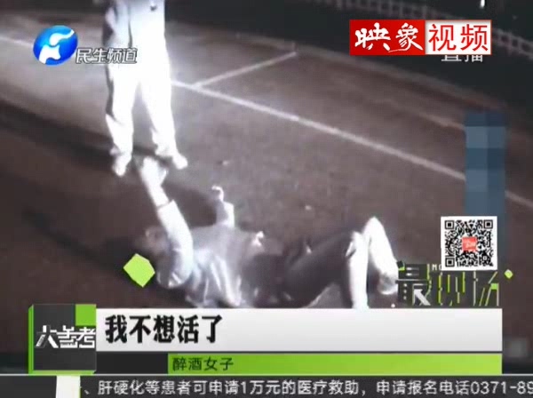 女子醉酒街頭打滾割腕欲自殺