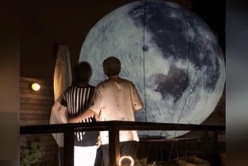 爺爺自帶“月亮”陪老伴過(guò)中秋