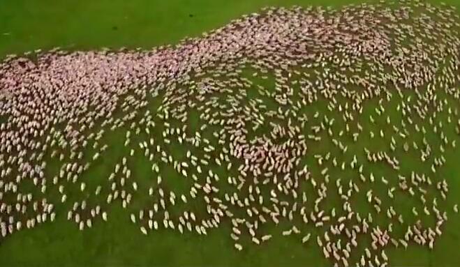 航拍近千只羊擠一個缺口 場面壯觀