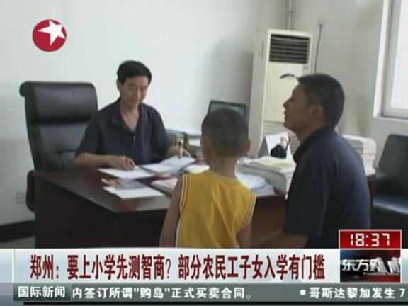 孩子要想接受義務(wù)教育,除了要辦齊各種手續(xù),還要進(jìn)行智商測驗(yàn),開具醫(yī)院相關(guān)證明--這是來自河南南陽鄧州農(nóng)民工魏雙恒的8歲兒子航航在鄭州市建設(shè)路三小求學(xué)時(shí)遭遇的難題。