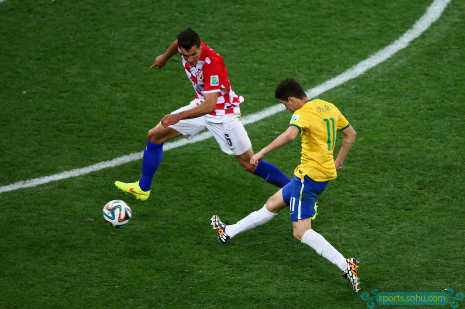 在巴西和克羅地亞的比賽最后時刻,拉米雷斯中場斷球,奧斯卡單騎闖關,在禁區(qū)邊緣一記捅射再次洞穿普萊蒂科薩的十指關,3-1,巴西鎖定勝局。最終,巴西隊憑借內(nèi)馬爾的2個進球,3-1逆轉克羅地亞贏得本屆世界杯的開門紅。圖為奧斯卡捅射瞬間