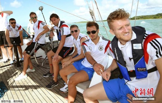 2014年6月10日,巴西圣安德烈,2014巴西世界杯前瞻,德國隊(duì)賽前放松乘船出游。