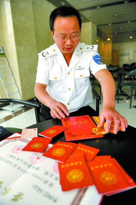雖說他熱衷于為大河報提供新聞線索,但提起自己的獻(xiàn)血經(jīng)歷卻不想多說。在記者的反復(fù)詢問下,李四信說,他于2002年1月開始第一次獻(xiàn)血。當(dāng)時,他與朋友在二七廣場附近游玩時看到一輛采血車,出于好奇就去獻(xiàn)了400毫升全血,因?yàn)槭呛檬?,獻(xiàn)過后自己很開心。從那以后,自己對獻(xiàn)血便“上了癮”,剛開始按獻(xiàn)全血的規(guī)定,每隔半年獻(xiàn)一次,一次400毫升;后感覺獻(xiàn)全血隔的時間有點(diǎn)長,就開始獻(xiàn)成分血,一個月就可以獻(xiàn)一次。其間,他獲得過鄭州市紅十字會、中國紅十字會總會等多個部門頒發(fā)的獻(xiàn)血榮譽(yù)證書。