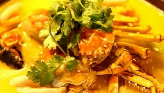 這道連機(jī)器人都要激動得把持不住的菜品呢,是這里的招牌菜湖蟹煲了。這道菜好吃的訣竅之一呢,就是食材好。正宗的陽澄湖大閘蟹,蟹膏豐滿晶瑩剔透相當(dāng)誘人。這道菜的做法其實(shí)是相當(dāng)簡單的,簡單的炸制之后呢,就是用高湯煨煮,燉出原汁原味。