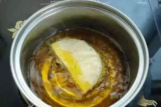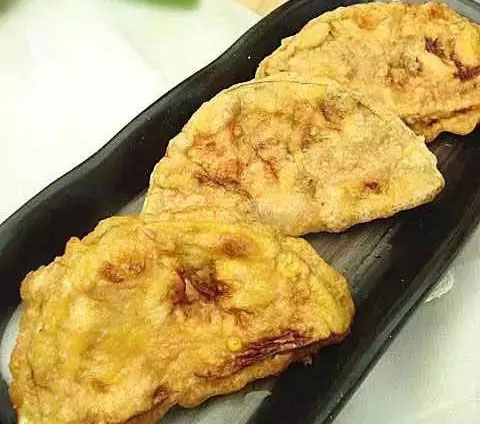 7. 面粉里放入雞蛋,鹽,不要加水,拌勻。茄團(tuán)掛糊。