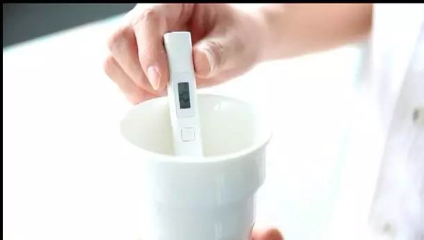 用小米水質(zhì)檢測筆,這里水質(zhì)顯示的數(shù)值和礦泉水的數(shù)值略有差別,證明了酒店的用水是健康的。